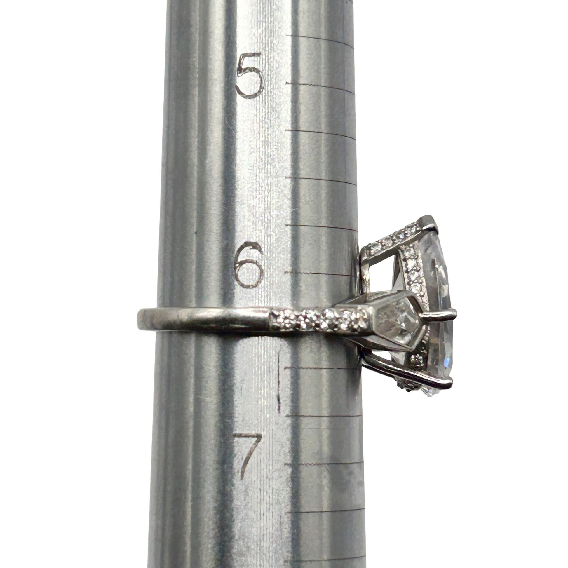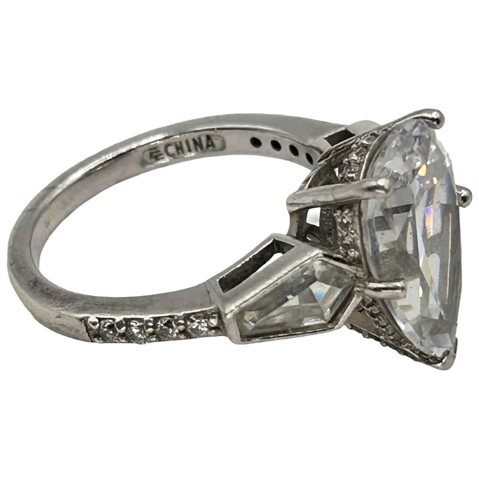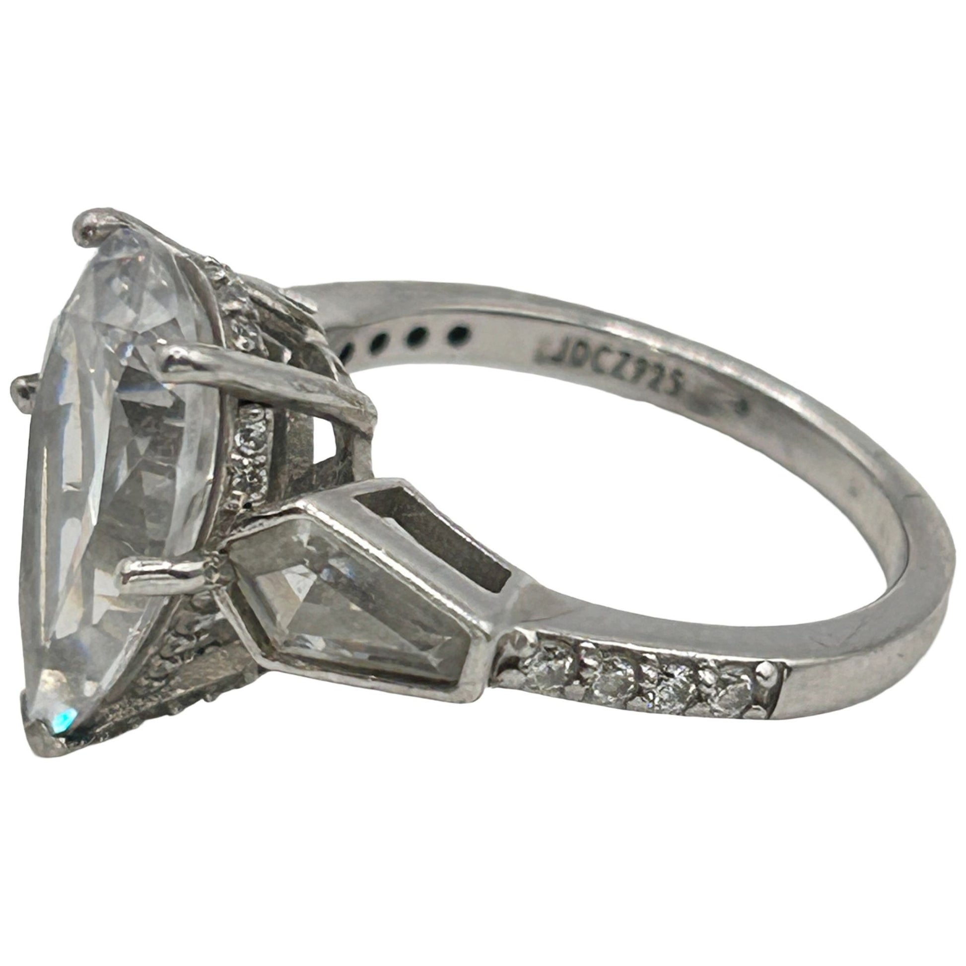 Vintage Jean Dousset 925 Sterling Silver Pear and Baguette CZ Ring - Size 6.25