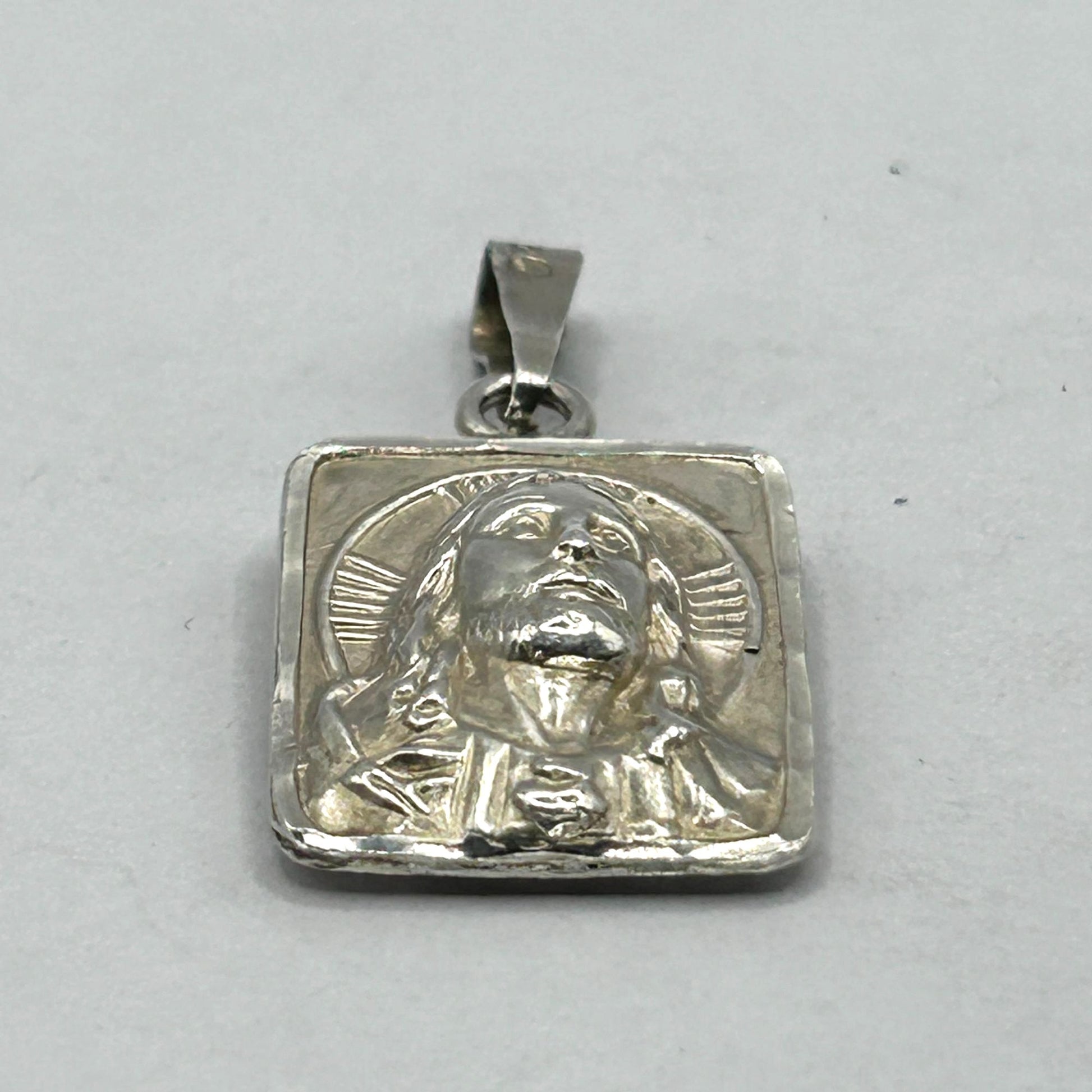 Vintage Mexico 925 Sterling Silver Jesus Christ & Mary Double Sided Pendant