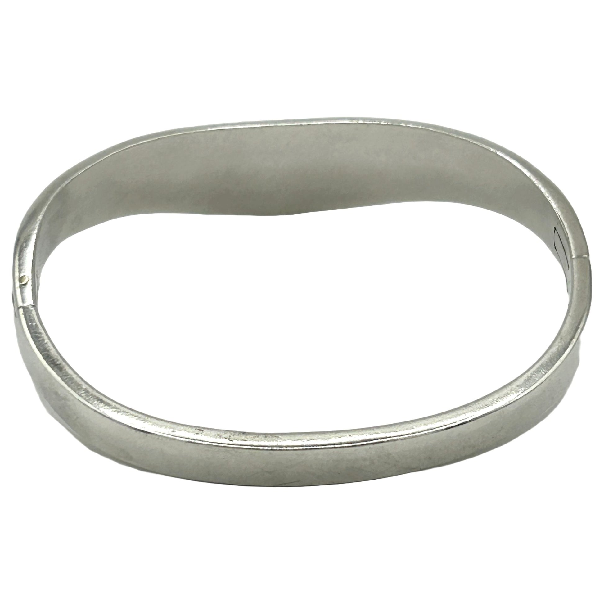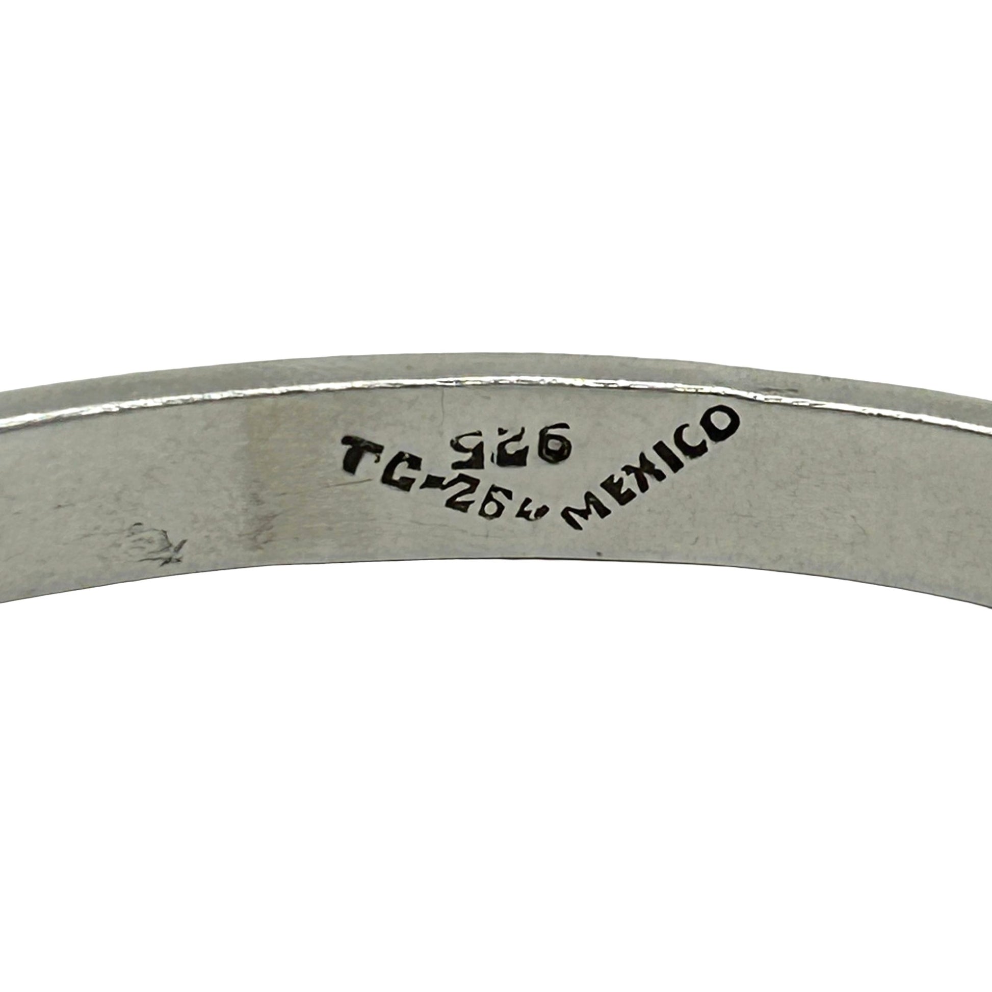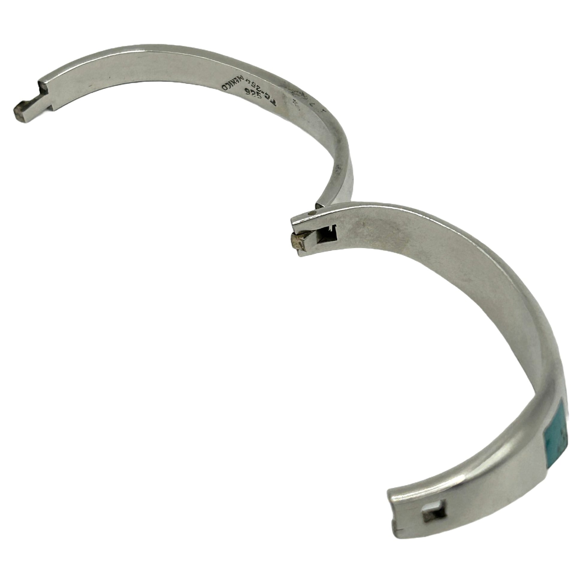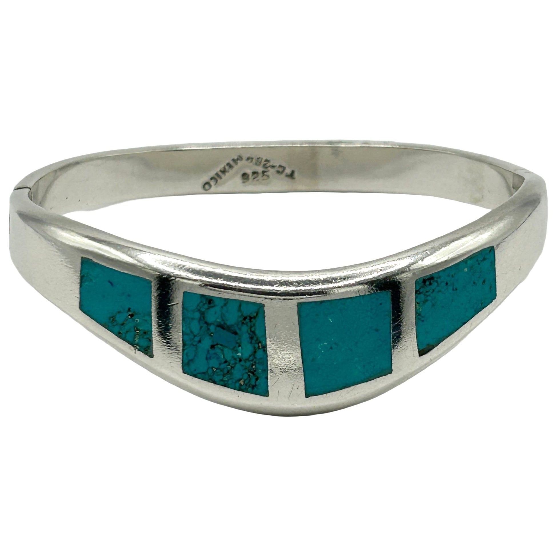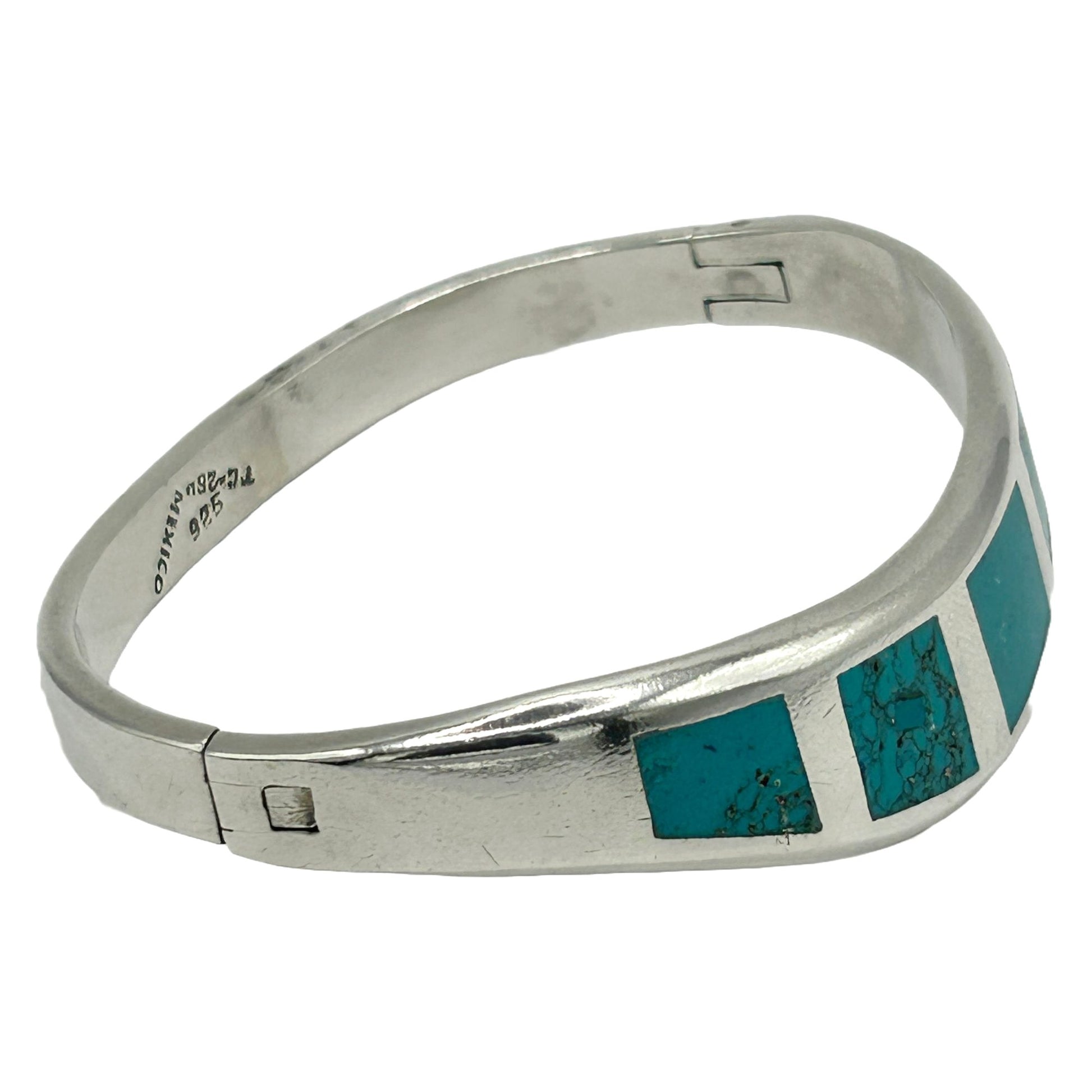 Vintage Taxco Mexico Sterling Silver Turquoise Inlaid Modernist Bangle Bracelet