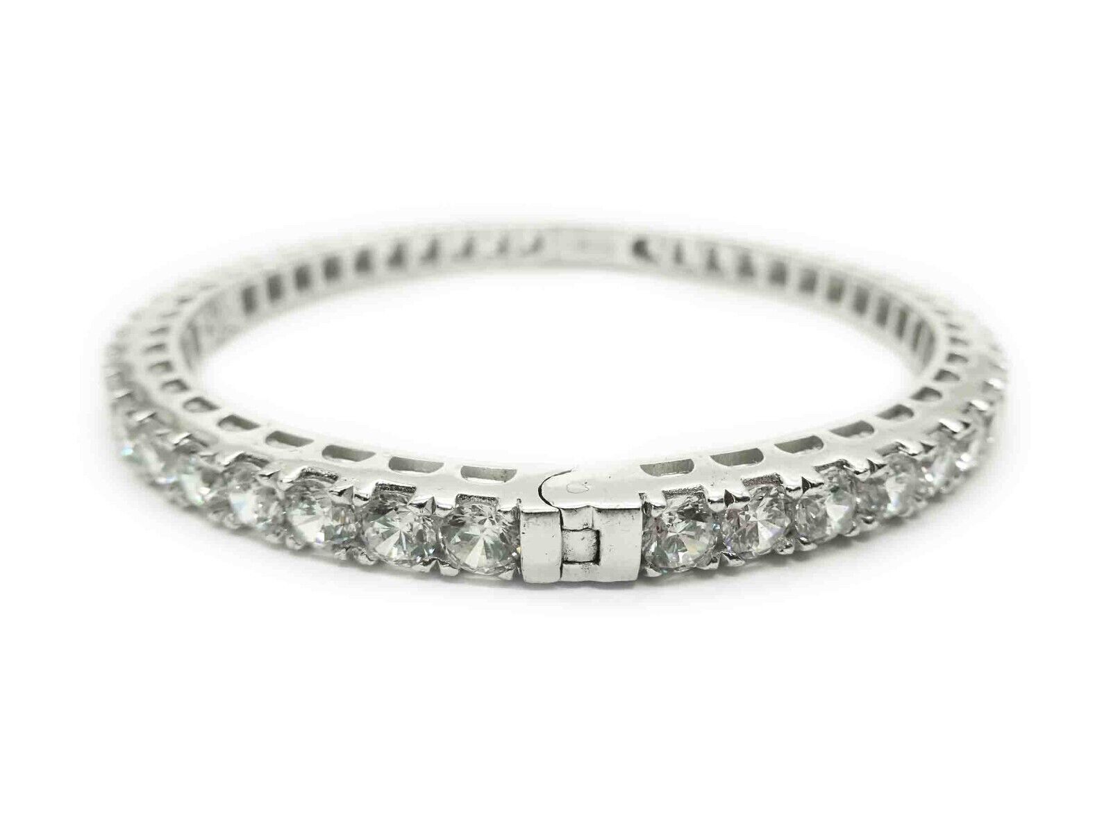Yagi Designer CZ Hinged Bangle Bracelet Sterling Silver