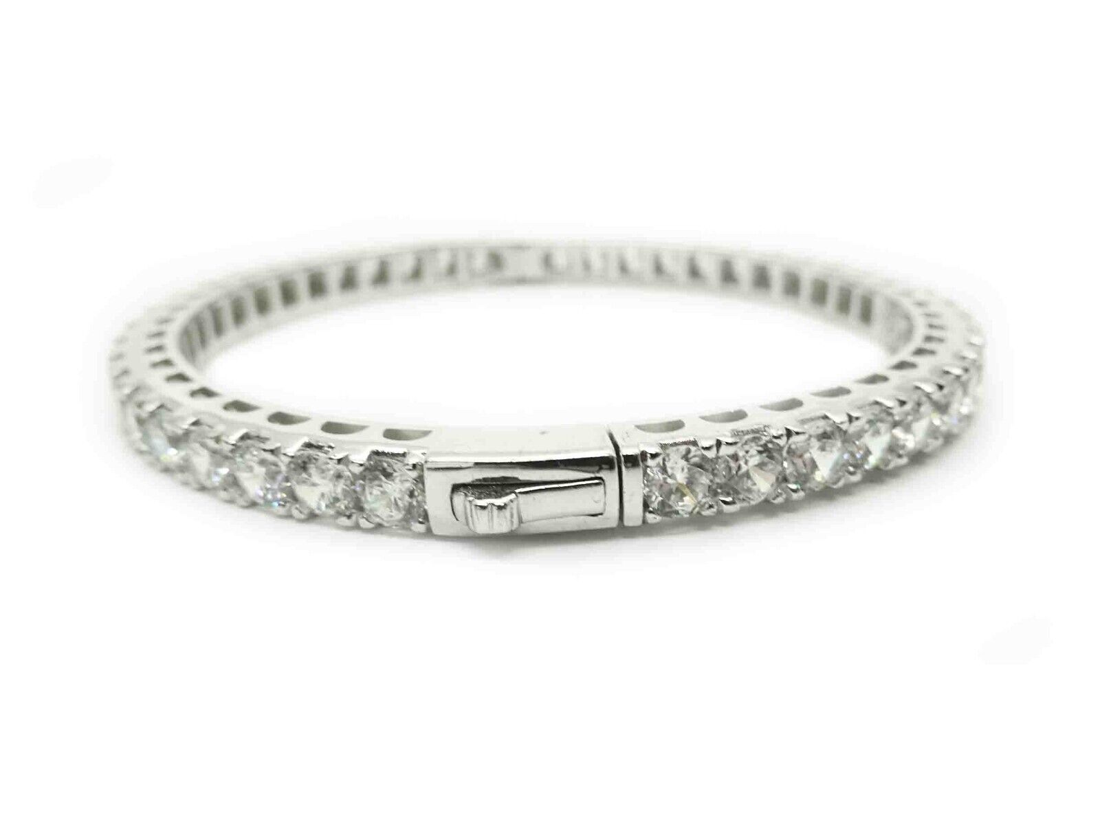 Set with 44 round white CZs, each about 0.20ct, estimated at about 8.8ct tw gem weight.